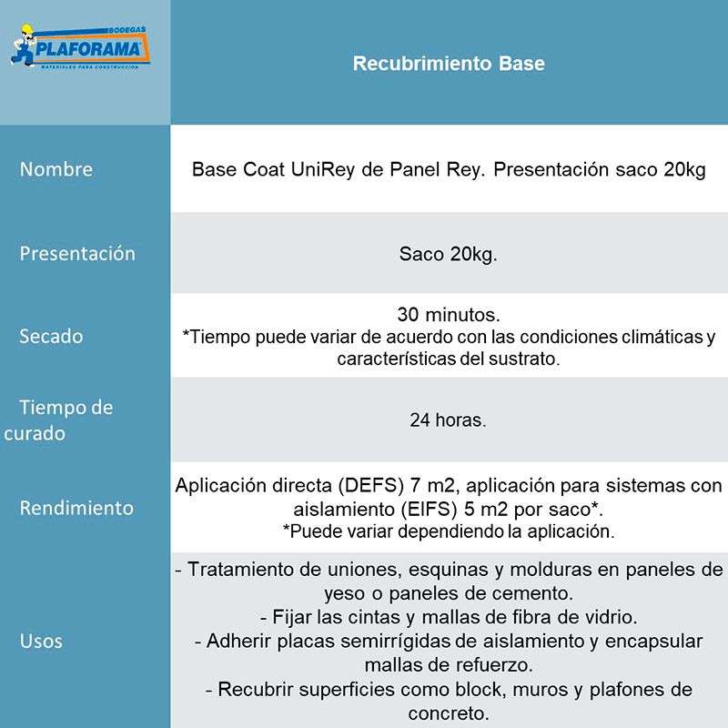 Recubrimiento conformado por una mezcla cemento Portland, minerales y resinas, especialmente diseñado para ser aplicado como una capa base en los sistemas DEFS, así como para encapsular mallas de refuerzo exterior y pegar placas semirrígidas en sistemas de aislamiento y acabado exterior (EIFS).