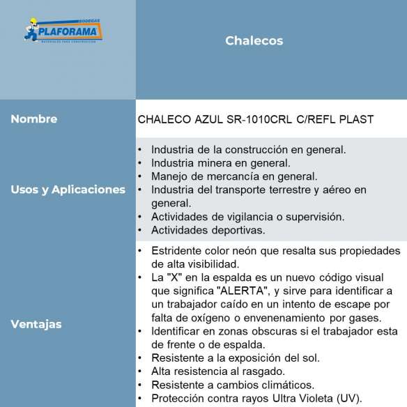 CHALECO AZUL SR-1010CRL C/REFL PLAST