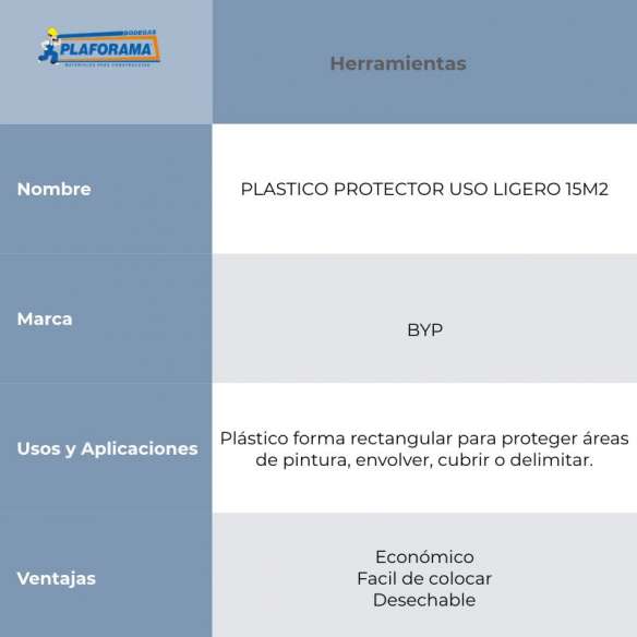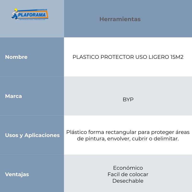 Plastico protector BYP 504408 . Uso ligero 15m2. Pieza.