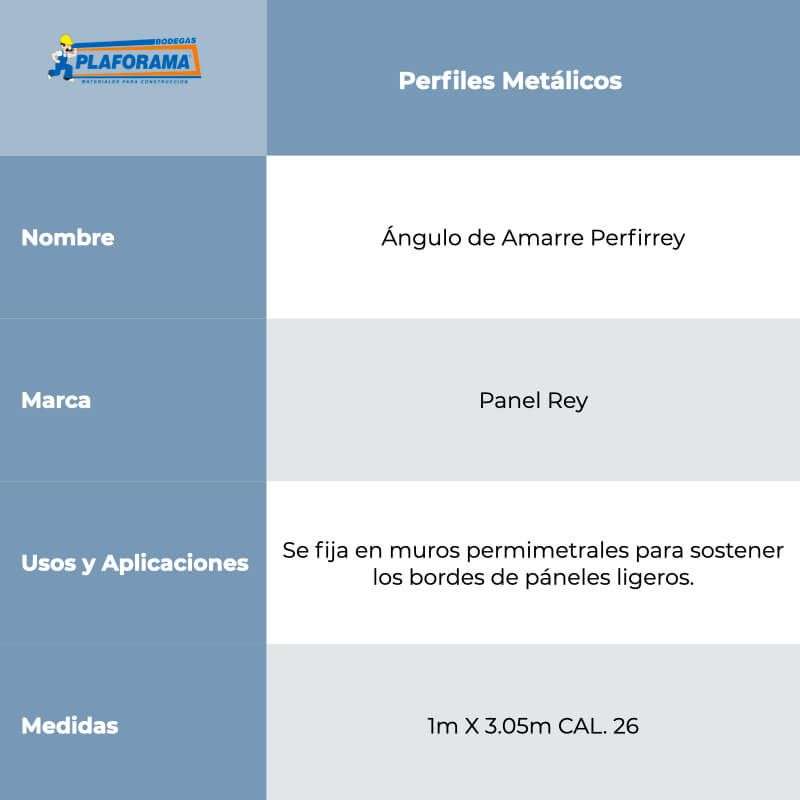- Ángulo de Amarre Perfirey calibre 26 medidas 2.50 cm x 3.05m