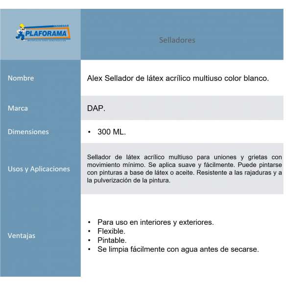 Alex Sellador de latex acrílico multiuso 300 ML color blanco