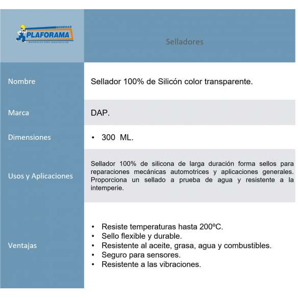 Silicon Dap 509597 Transparente 100% . Presentación 300 ml.