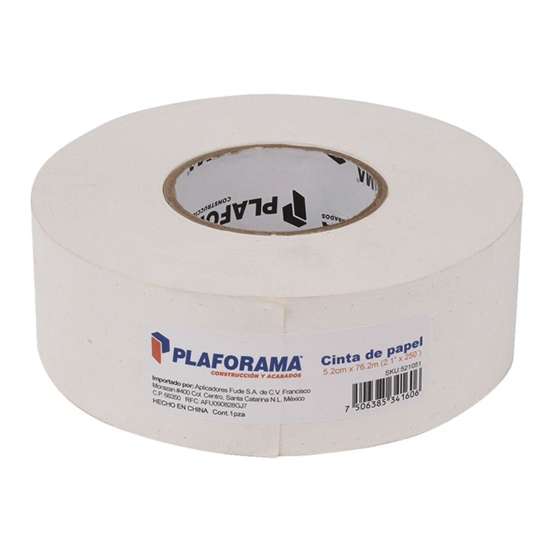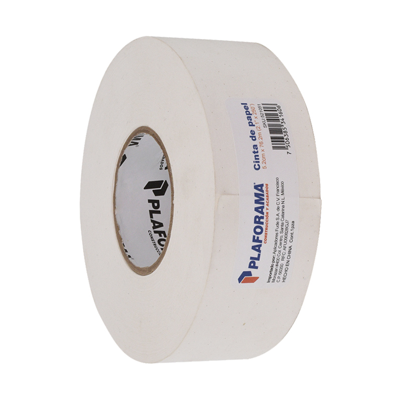 La Cinta De Papel Plaforama Para Panel De Yeso con medidas de 5.2cm x 75 m. Se utiliza en el sistema de construcción ligera para el tratamiento de juntas, o acabado de uniones, en las esquinas del panel de yeso instalado en muros interiores.
