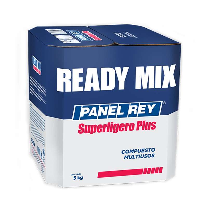 Compuesto Ready Mix Súper Ligero Panel Rey. Presentación caja 5kg, rendimiento 7.5m2. Para acabados, resane o relleno de juntas.