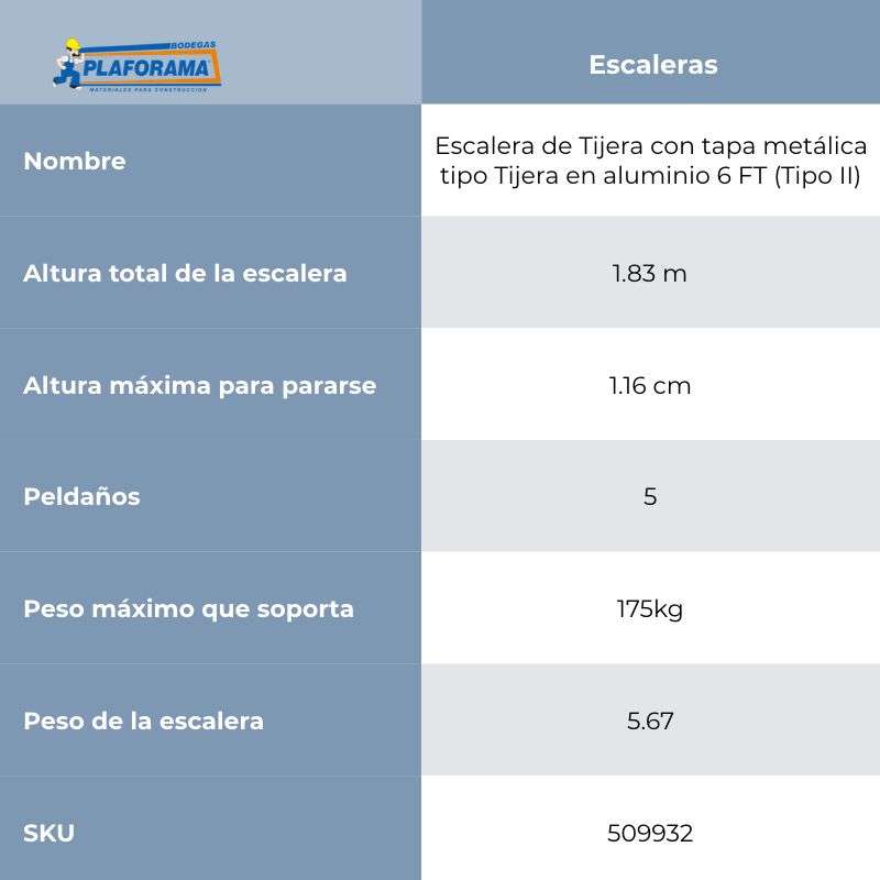 Escalera Cuprum 509932 Tijera Aluminio tipo II 6ft C-2213-06. I