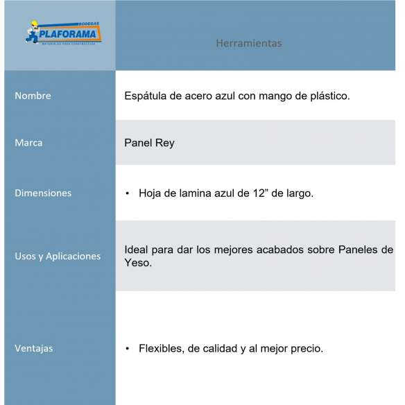 Espatula de acero con mango de plastico PANEL REY de 30.48 cm (12")