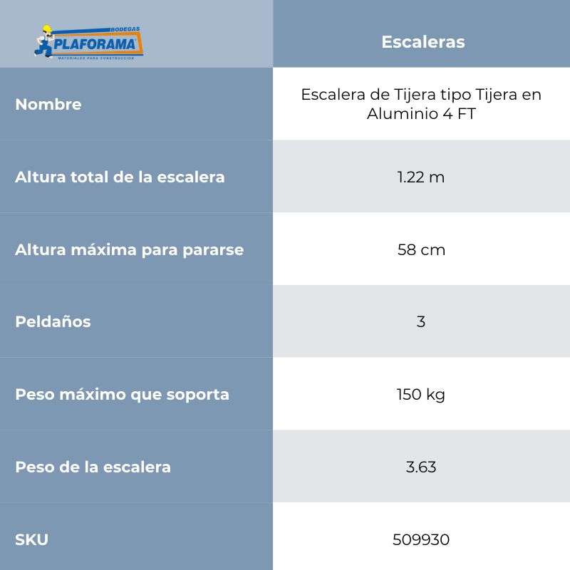 Escalera de tijera aluminio tipo III C-2312-04N Cuprum Altura 4 pies(1.22m) Capacidad de carga 150Kg