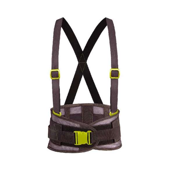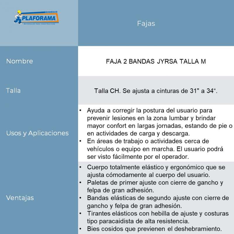 Faja sacrolumbar de malla con banda doble y tercer cinturón, talla M. Se ajusta a cinturas de 31" a 34". Ayuda a corregir la postura del usuario para prevenir lesiones en la zona lumbar y brindar mayor confort en largas jornadas, estando de pie o en actividades de carga y descarga.